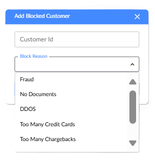 Once blocked, the customer will not be able to make any deposits and will see the following error message: "There are no available payment options for you."